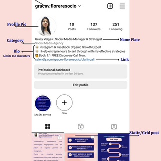 2. Your bio: When crafting your bio, it's important to communicate to your audience why they should follow you. Your bio should focus on what value you can offer them rather than just listing your accomplishments or possessions.